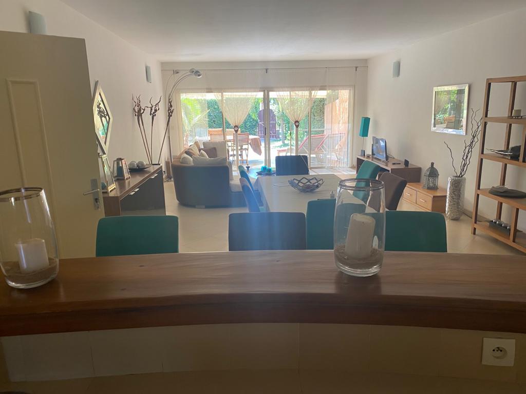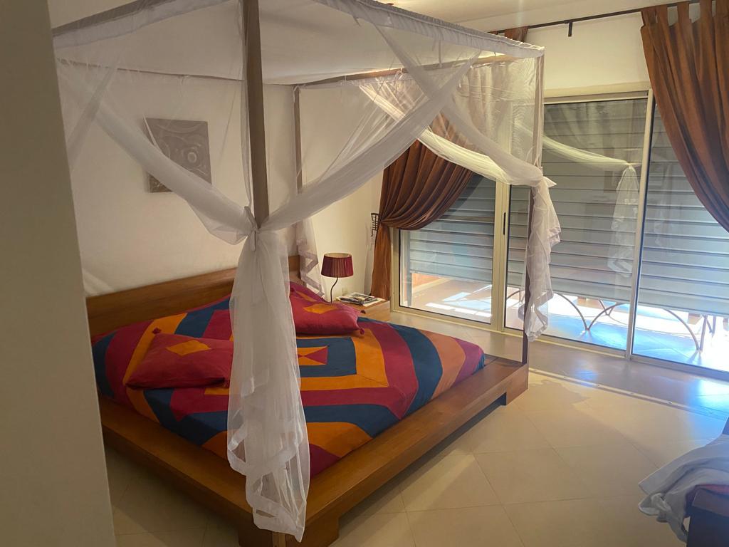 Charmant appartement entièrement équipé, composé de 2 chambres chacune avec salle de bain, une cuisine moderne, un salon lumineux et un jardin privé idéal pour vos moments de détente. Situé dans la prestigieuse Résidence Safari Village, vous profitez d’un cadre sécurisé, convivial et à proximité immédiate de la plage et des commodités.